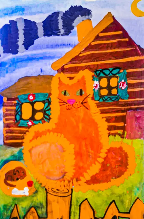 Когда-то на месте района Зябликово была деревня. Деревянные дома, сады, огороды, бурёнки, домашние коты, которые ловят мышей. Я нарисовала Зябликово, каким оно было много лет тому назад.