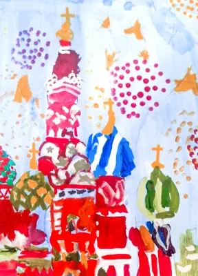 Я люблю рисовать Москву. Одно из самых красивых исторических мест города - Красная площадь и Храм Василия Блаженного. А праздничный салют восхищает всех жителей города яркими красками и всполохами света.