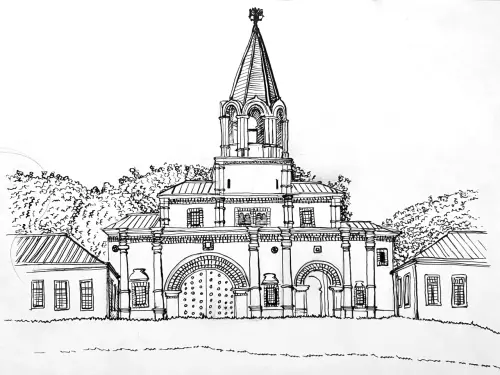 Я учащийся ДХШ им. Ю.С. Саульского. На пленэре мы ездили в Коломенское. Мы делали много набросков. Особенно мне понравились "Передние ворота".