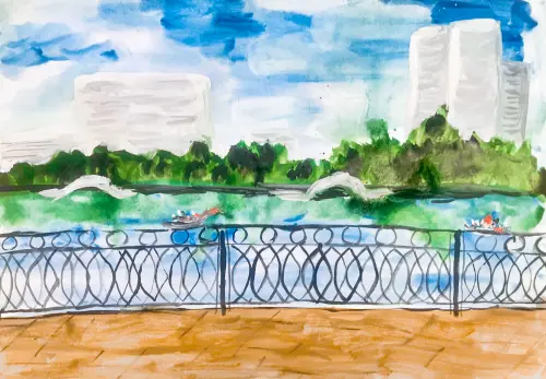 Меня зовут Диана. У меня большая семья. С мамой и папой любим гулять в парке в 15 районе около Михайловкого пруда. Тут красиво, можно покататься на велосипеде и самокате.