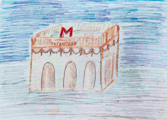 Мой рисунок был выбран не случайно. В районе много мест красивых, но выбрала именно это метро, так как там не менее красиво и очень часто мы с мамой ездили на нем. Станция метро «Таганская» в Московском метрополитене имеет две разные станции на разных линиях: Кольцевую и Таганско-Краснопресненскую. Обе станции расположены на Таганской площади и соединены между собой переходом.