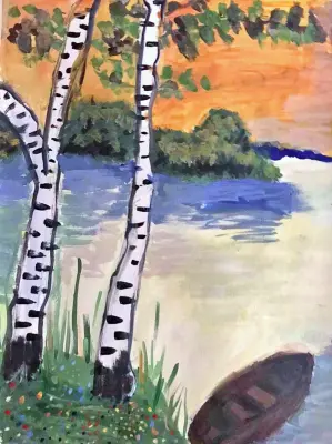 Красивая тихая заводь на берегу Москва-реки в Серебряном бору. Рисунок сделан гуашью на белом плотном ватмане. Ребёнок занимается в изо-студии ТО "Гармония". Руководитель Цветкова Елена Евгеньевна.