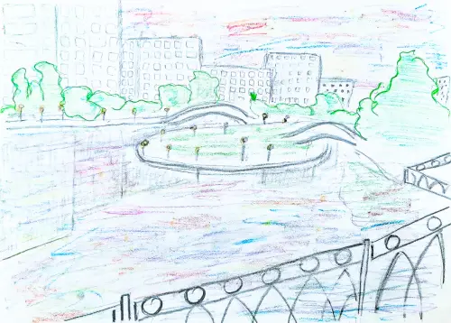 Это мой любимый пруд, там есть остров и мост, но на остров мама меня не пускает. Мы гуляем на пруду и кормим уток. Иногда мама мне покупает мороженое. Я люблю там гулять и наслаждаться природой.