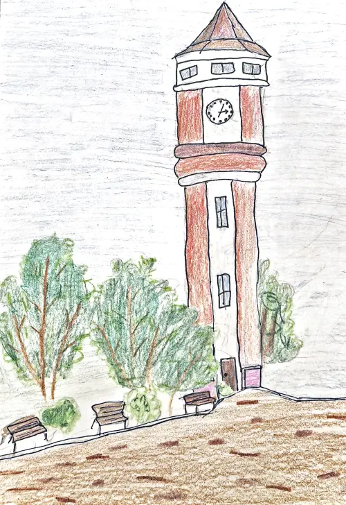 Водонапорная башня, одна из главных достопримечательностей Красной Пахры, расположена рядом с ДК Звёздный, где дети проводят много времени после школы.