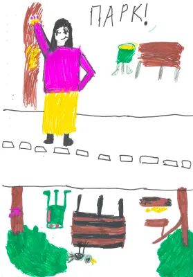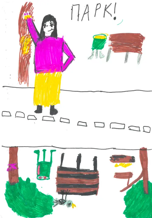 Постепенно рисунок оживал. Я добавлял детали: кору деревьев, траву, мелкие цветы на лугу. В какой-то момент я забыл обо всём вокруг, полностью погрузившись в процесс. Мир вокруг словно перестал существовать, остался только я, блокнот и моя попытка запечатлеть красоту момента.