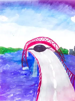 Я нарисовала мост, который мне очень нравится. Я учусь в школе искусств Козловского на художественном направлении, и там порекомендовали мне отправить работу на этот конкурс. Надеюсь, она понравится.