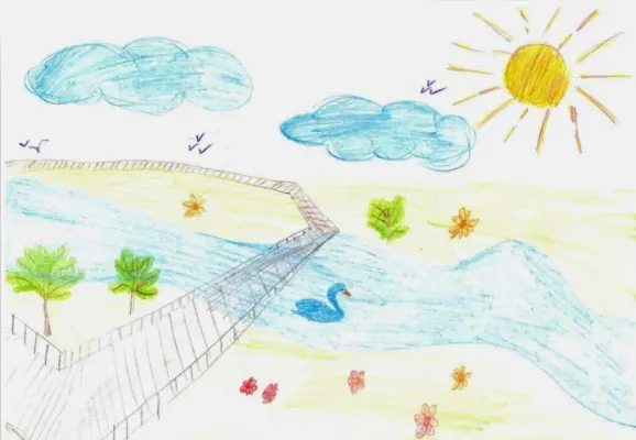 Всем привет. Меня зовут Даша. На своём рисунке я захотела нарисовать парк «Яуза». Потому что в любое время погода со своей семьёй я очень люблю гулять именно в этом парке. Почему именно в этом? Много причин. Во-первых, тут есть речка, много уточек, которых мы с мамой любим кормить, много площадок детских и спортивных для взрослых. Один раз, когда мы гуляли, я видела как компания друзей играла в какую-то игру. Я спросила у мамы, а что это за игра? И я узнала, что это волейбол. Ещё в этом парке и есть много белочек, которые с удовольствием покушают все орешки, которые вы им захотите принести. Потому в заключение хочу вам от всей души посоветовать: гуляйте в парке «Яуза» в районе Северное Медведково!