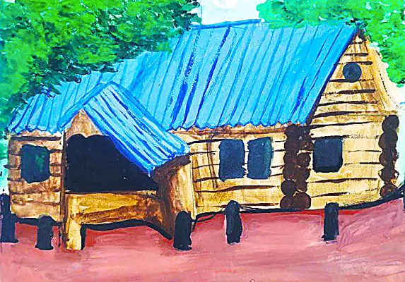 Формат А3, гуашь Домик Петра I в Коломенском — деревянный дом, построенный в 1702 году для Петра I во время визита царя в Новодвинскую крепость. Это единственный в Москве мемориальный музей, посвящённый Петру I.