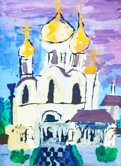 Я нарисовал храм святителя Спиридона Тримифунтского. Этот православный храм находится в районе Нагатинский Затон. Он входит в состав Даниловского благочиния Московской епархии. Храм имеет статус патриаршего подворья. Формат А3, гуашь.