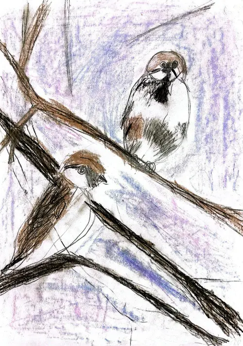 Рисунок стал напоминанием о мимолётной встрече с птицами в Битцевском парке, о красоте, которая окружает нас повсюду, нужно только уметь её замечать. В рисунке хотелось передать не только внешнее сходство, но и ощущение хрупкости, свободы, единения с природой.