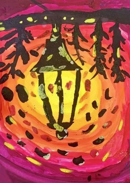 На рисунке изображён уличный фонарь, который освещает парк, в котором я всегда играю вместе с другими дети около своего дома. Свет тепла, добра и уюта.