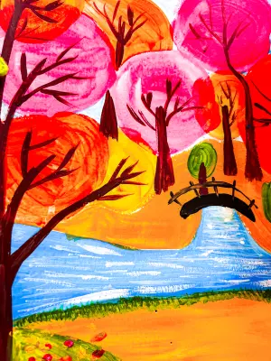 Мой рисунок выполнен красками гуашью. Я нарисовал парк «Покровское-Стрешнево», там много красивых деревьев и красивый пруд, летом мы там купаемся и жарим шашлыки.