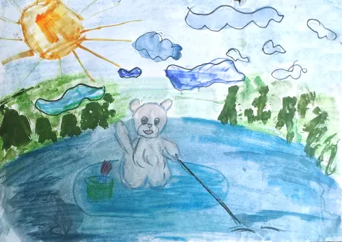 Лето - время отдыха, купания и рыбалки. Я очень люблю рыбачить. Ловлю на удочку, а еще с дедушкой ездим на ночную рыбалку. Терпей тоже ловит рыбу на Борисовских прудах!